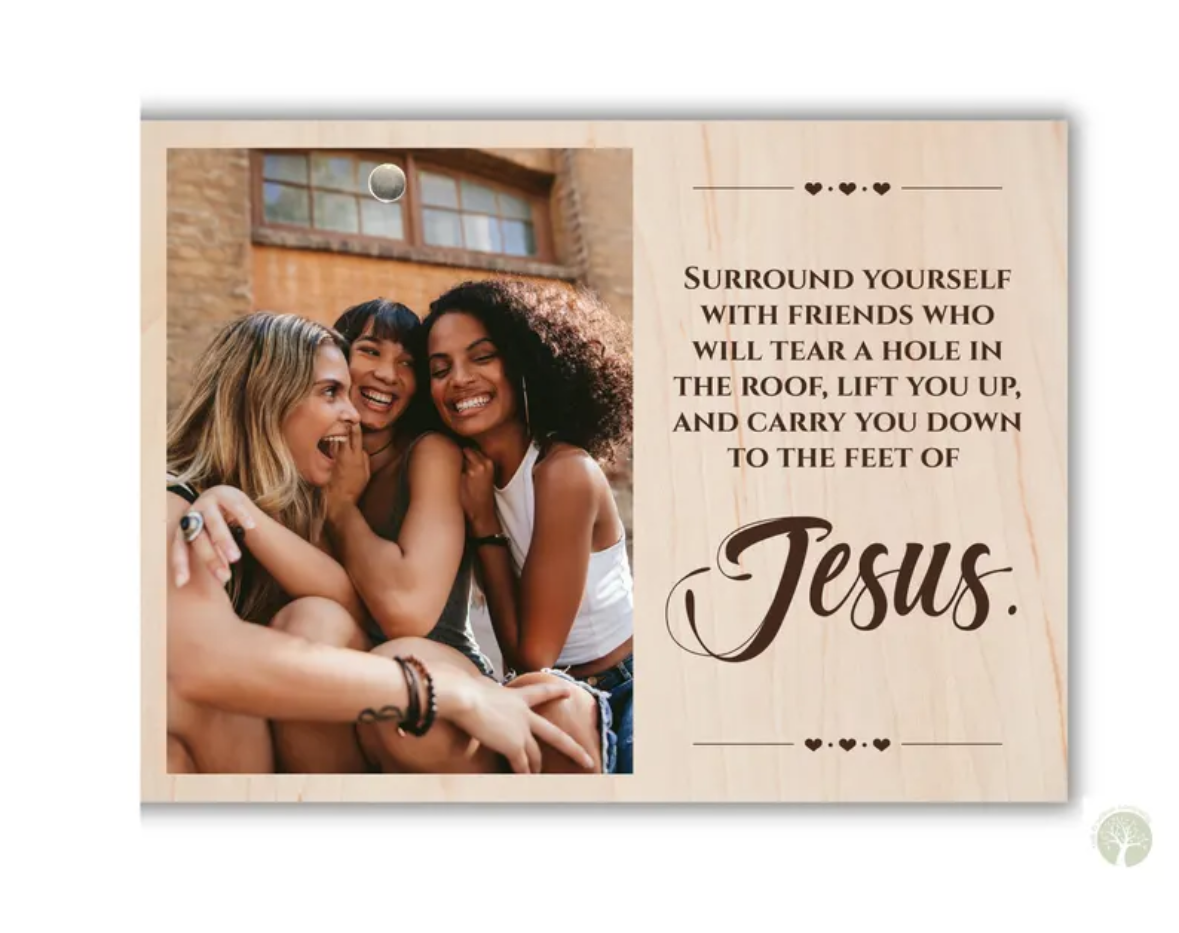 Celebrate the gift of godly friendship with this beautifully engraved photo frame. Inspired by the story in Mark 2, where faithful friends carried a man to Jesus, this frame is a meaningful reminder to treasure the friends who pray with you, encourage you, and point you back to Christ.