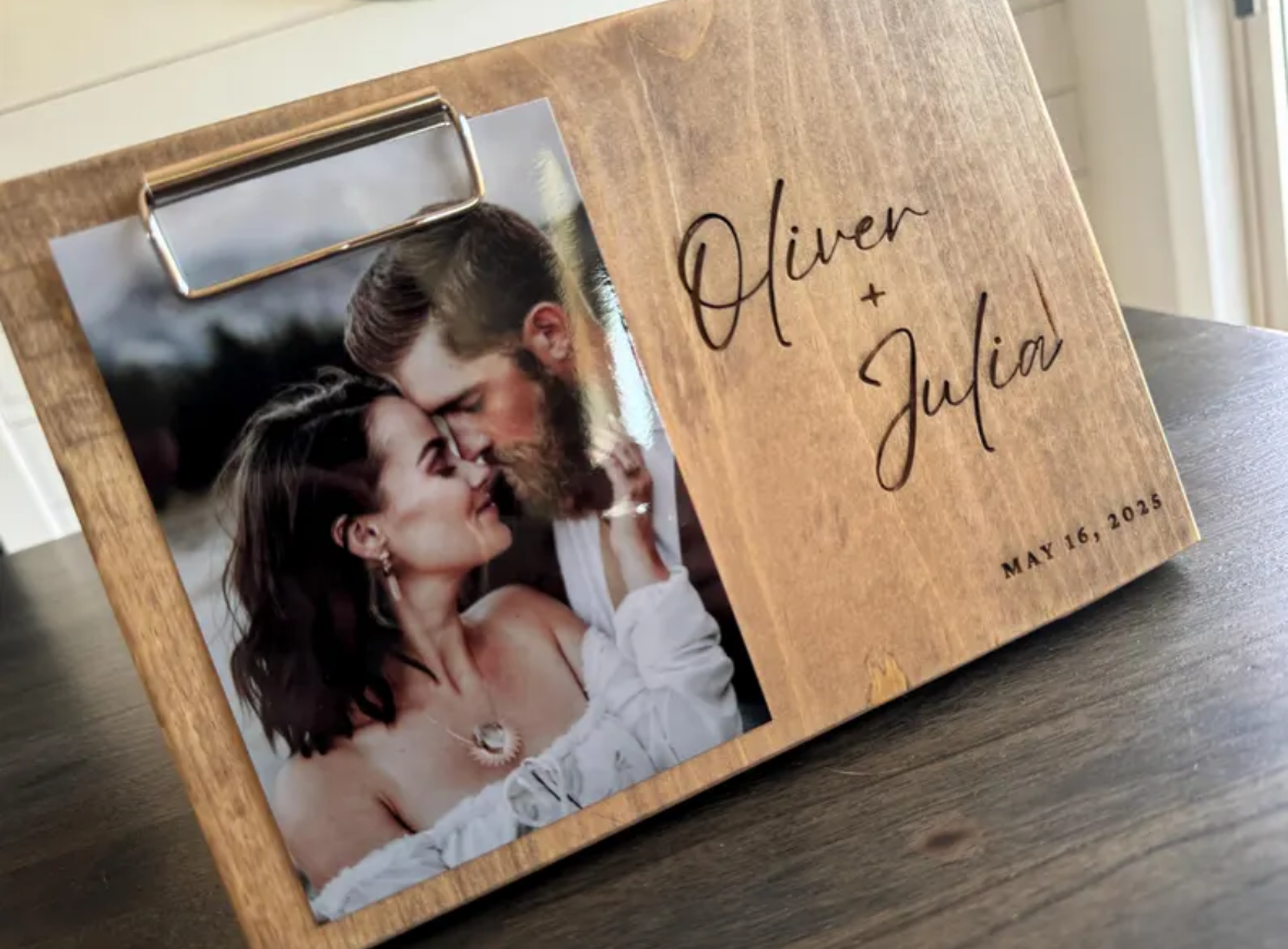 Celebrate your love story—or the love story of someone special—with this beautifully crafted wooden photo frame, personalized with the couple’s names and a meaningful date. Featuring fancy script writing, it’s a timeless piece to honor the journey two people build side by side.